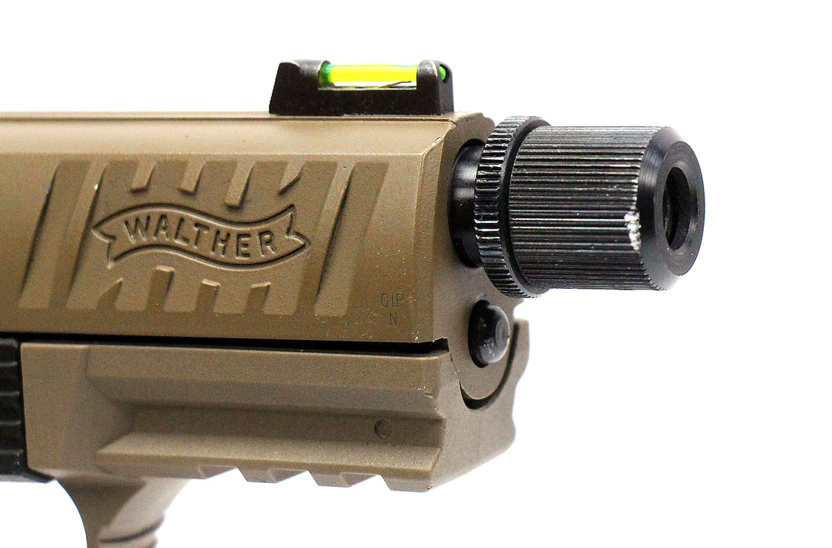 This is a used Walther P22 Tactical pistol chambered in 22 Long Rifle. It features a 4.25-inch threaded barrel, 10-round magazine, ambidextrous safety, magazine disconnect safety, paddle magazine release, fiber optic front sight, adjustable rear sight, and accessory rail. Includes factory box, instruction manual, and two magazines. Overall, this Walther is in good condition with with normal wear on the barrel and slide. This would be a good choice for target shooting. Buy online today!