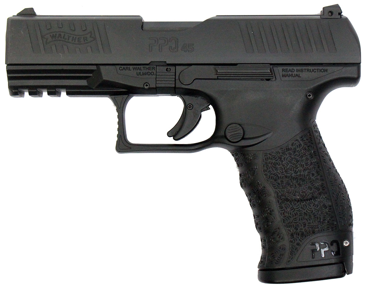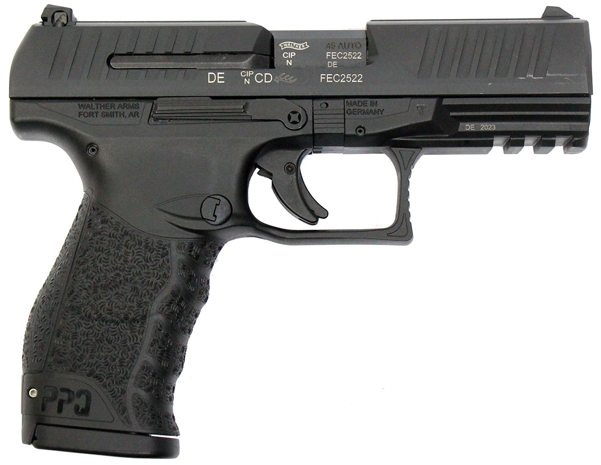 This is a used Walther PPQ M2 pistol chambered in 45 ACP. It features a 4-inch barrel, 12-round magazine, 3-dot sights, push button magazine release, and accessory rail. Overall, this Walther is in good condition with normal wear on the slide and barrel. This would be a good choice for home defense. Buy online today!