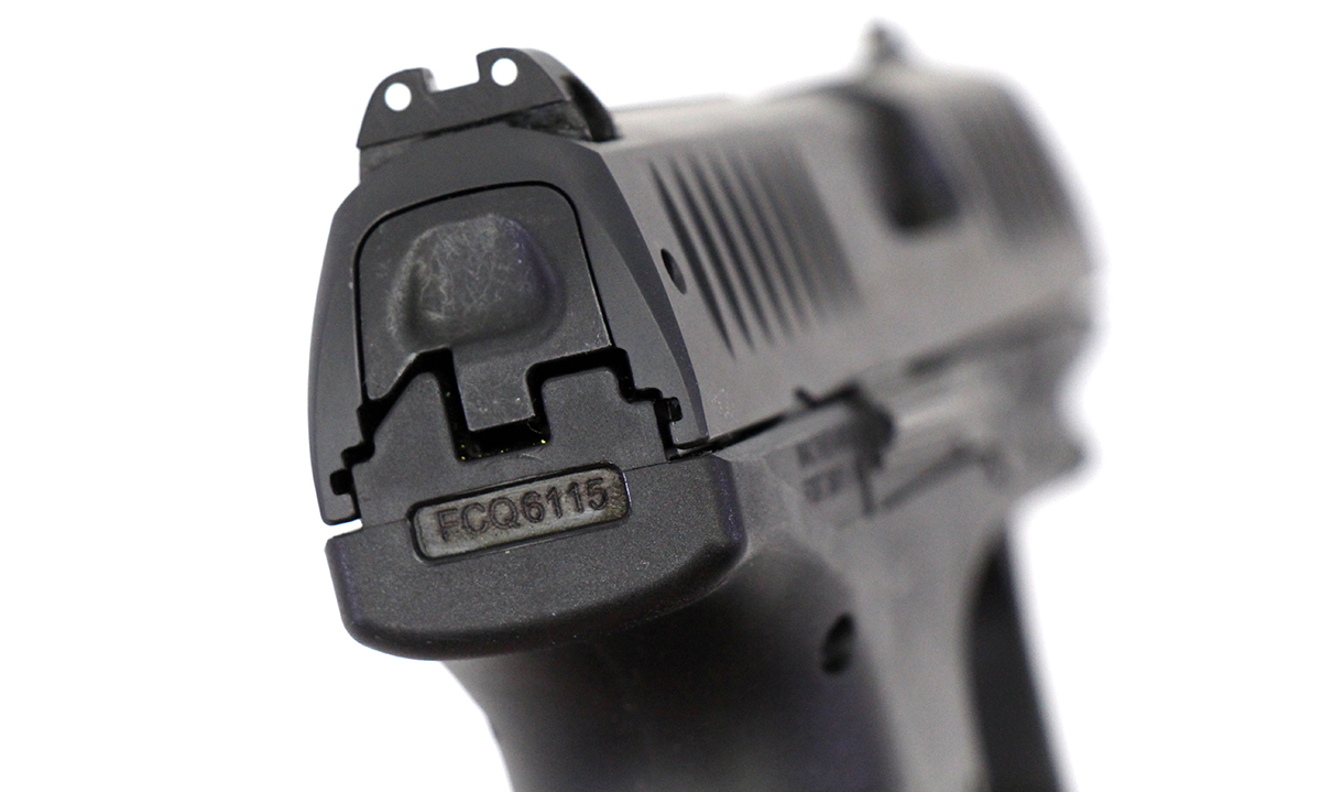 This is a used Walther PPQ Subcompact pistol chambered in 9mm. It features a 3.5-inch barrel, 15-round magazine, push button magazine release, ambidextrous slide stop lever, and accessory rail. Overall, this Walther is in good condition with normal wear on the slide and barrel. This would be a good choice for concealed carry. Buy online today!
