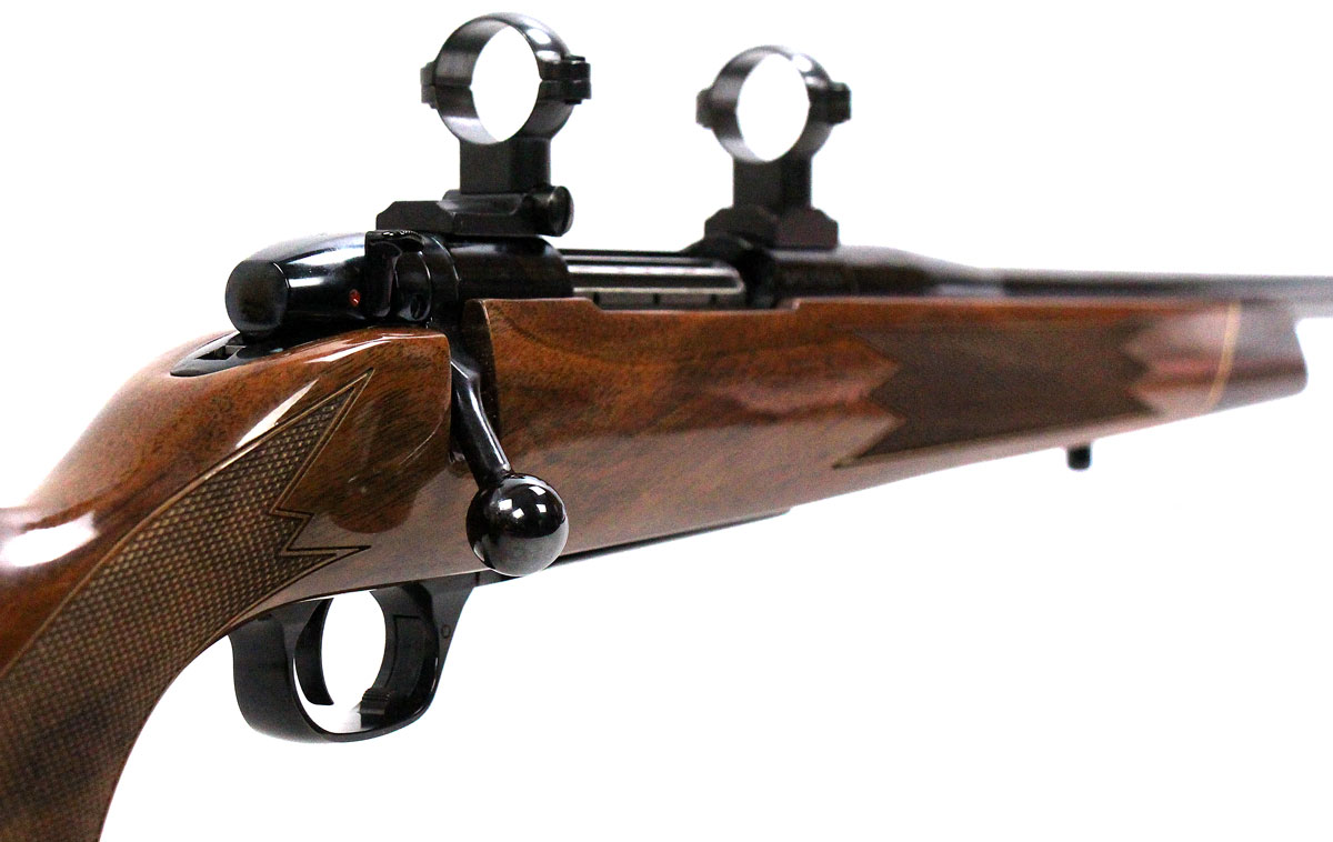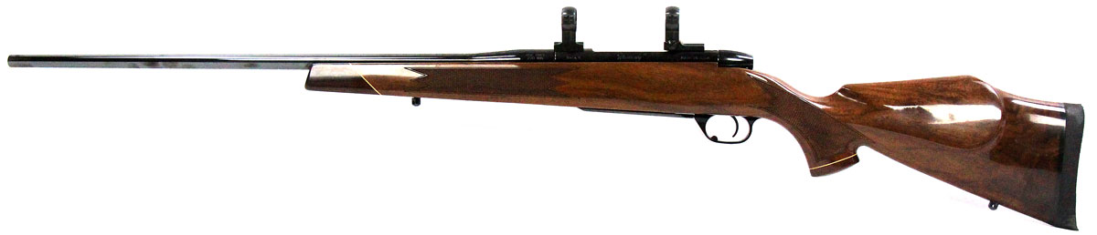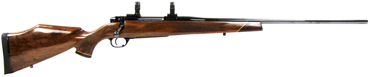 This is a used Weatherby Mark V Deluxe rifle chambered in 270 Winchester. It features a 24-inch barrel, 5-round hinged floorplate magazine, 1-inch scope rings, sling studs, blued finish, and checkered Monte Carlo stock. Overall, this Weatherby is in good condition with normal handling marks on the stock. Bore condition is good with crisp rifling. The barrel is marked "Made in USA" on the left side. This would be a good choice for hunting. Buy online today!