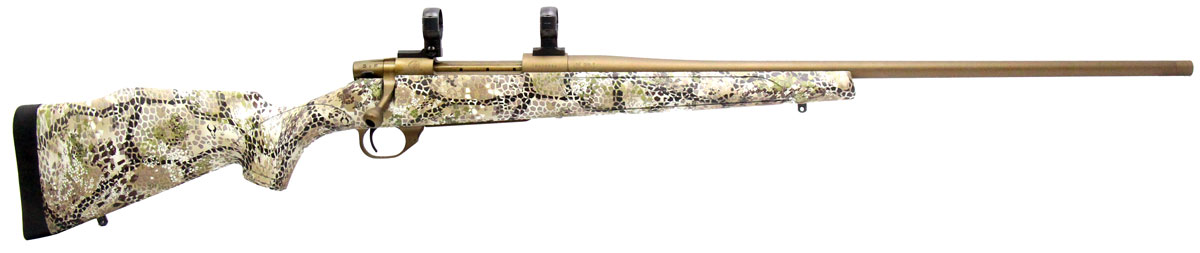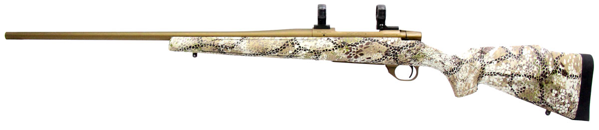 This is a used Weatherby Vanguard Badlands rifle chambered in 300 Winchester Magnum. It features a 24-inch threaded barrel, 3-round hinged floorplate magazine, 1-inch scope rings, sling studs, burnt bronze Cerakote finish, and Badlands camo stock. Overall, this rifle is in good condition with some handling wear on the barrel. Bore condition is good with crisp rifling. This would be a good choice for hunting big game. Buy online today!