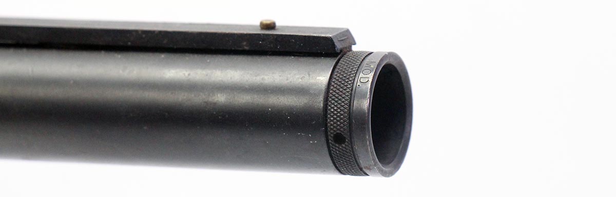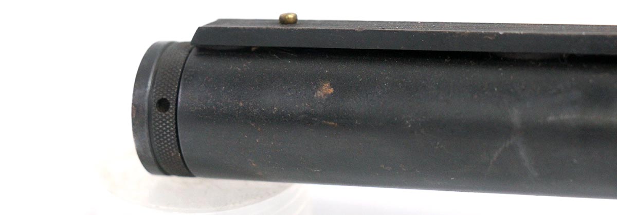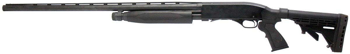 This is a used Winchester 1300 shotgun chambered in 12 gauge. It features a 28-inch vent rib barrel, 3-inch chamber, collapsible stock with pistol grip and shell carrier, cross-bolt safety, and screw-in modified choke. Overall, this shotgun is in good condition with some surface corrosion on the barrel exterior and rib. This would be a good choice for hunting. Buy online today!
