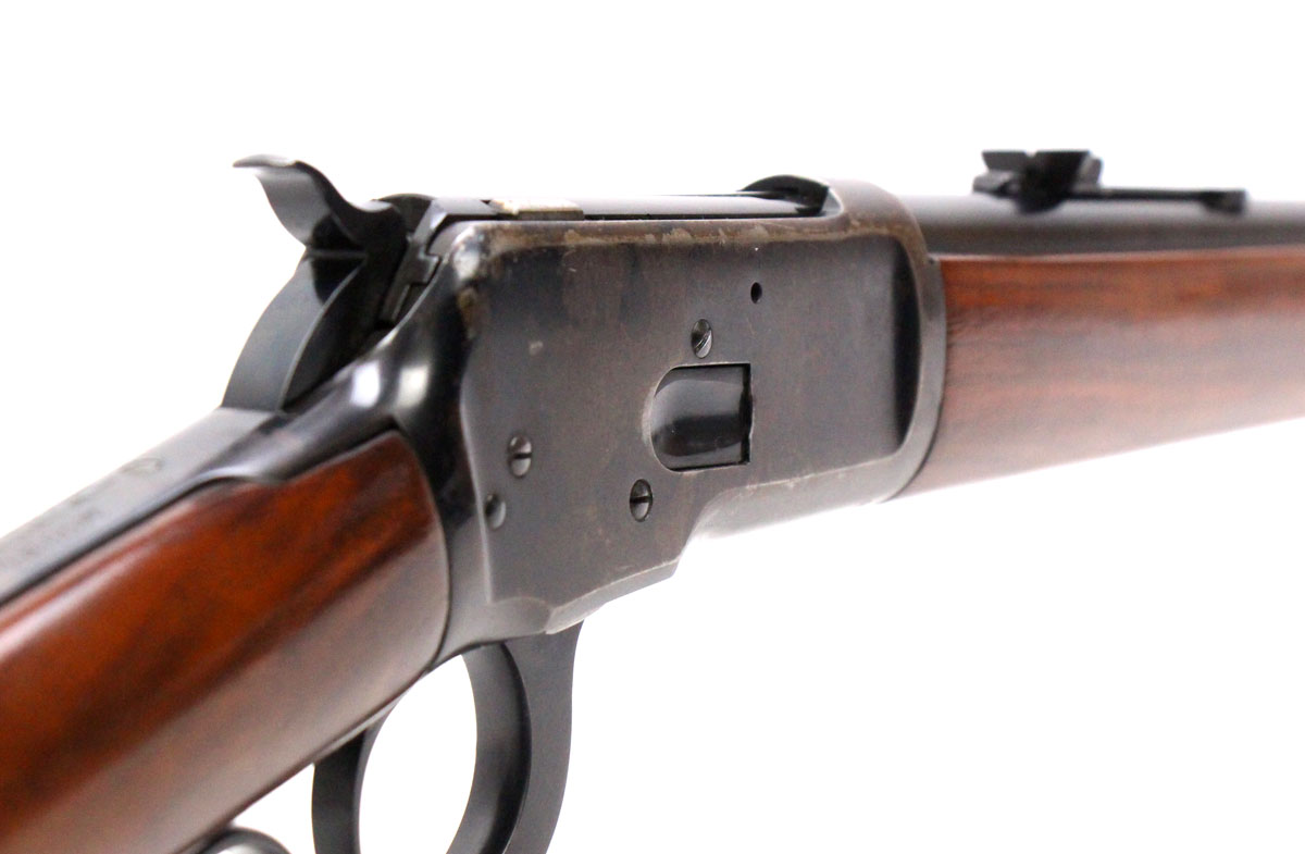 This is a classic Winchester 1892 rifle chambered in 25-20 Winchester. It features a 24-inch round barrel, side loading gate, adjustable rear sight, dovetail front sight, and steel crescent buttplate. Overall, this rifle is in good condition with normal age-related bluing wear on the receiver and handling wear on the barrel. Bore condition is good with crisp rifling. Based on serial range, this rifle was manufactured in 1924. This would be a good choice for Winchester collectors. Buy online today!