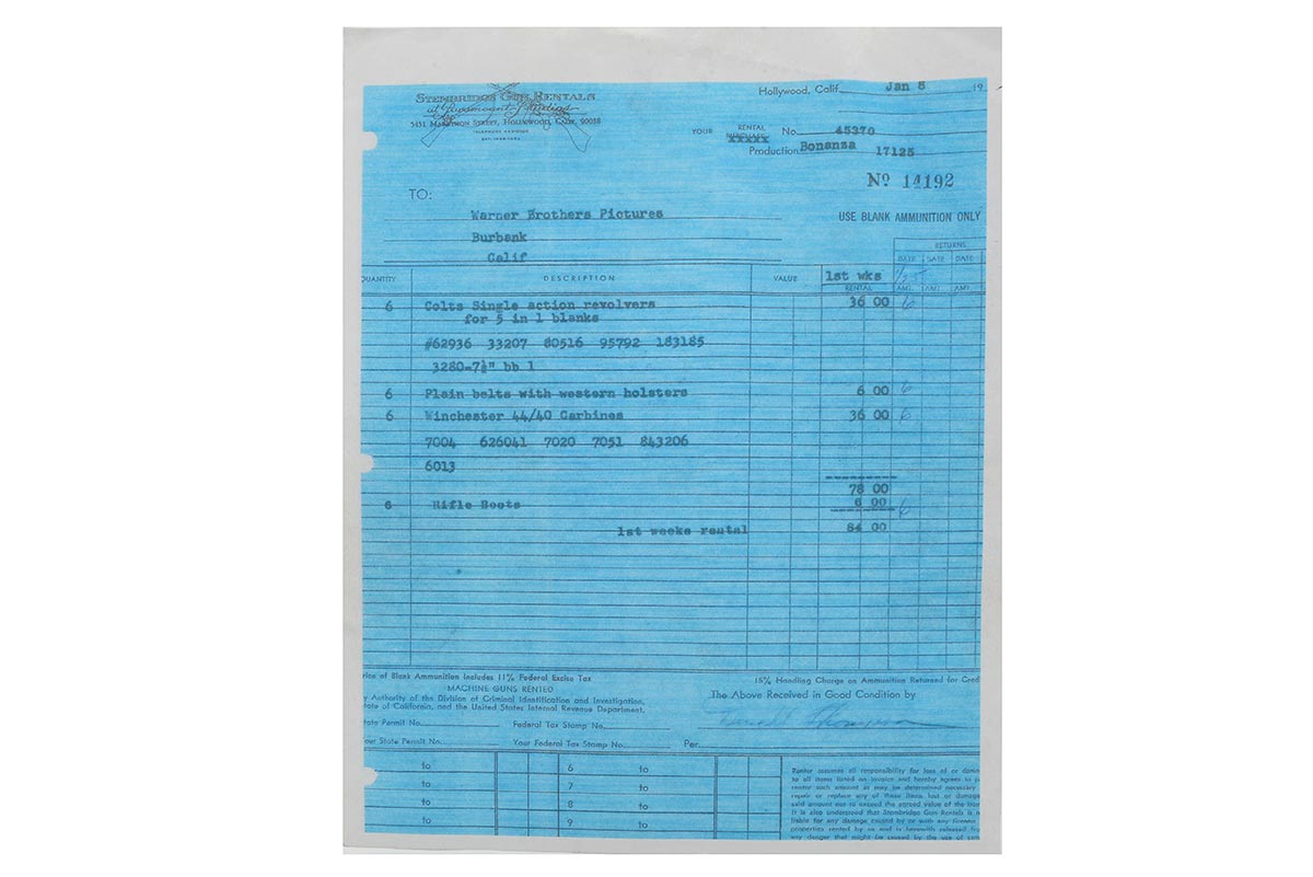 Invoice 13788: "Bonanza", season 12 episode 5 "The Power of Life and Death" - Aired 10/11/70