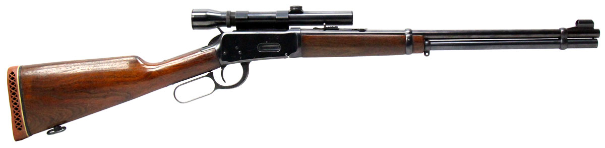 This is a used Winchester 94 rifle chambered in 30-30 Winchester. It features a 20-inch barrel, 7-round capacity, adjustable rear sight, hooded front sight, Weaver K3-60B 3X scope, and straight grip stock with rubber recoil pad. Overall, this Winchester is in good condition with significant handling wear throughout the stock. The initials "JFM" are etched in the scope mount and lower tang. Bore condition is good with crisp rifling. Based on serial range, this Winchester was manufactured in 1959. This would be a good choice for recreational target shooting or hunting. Buy online today!