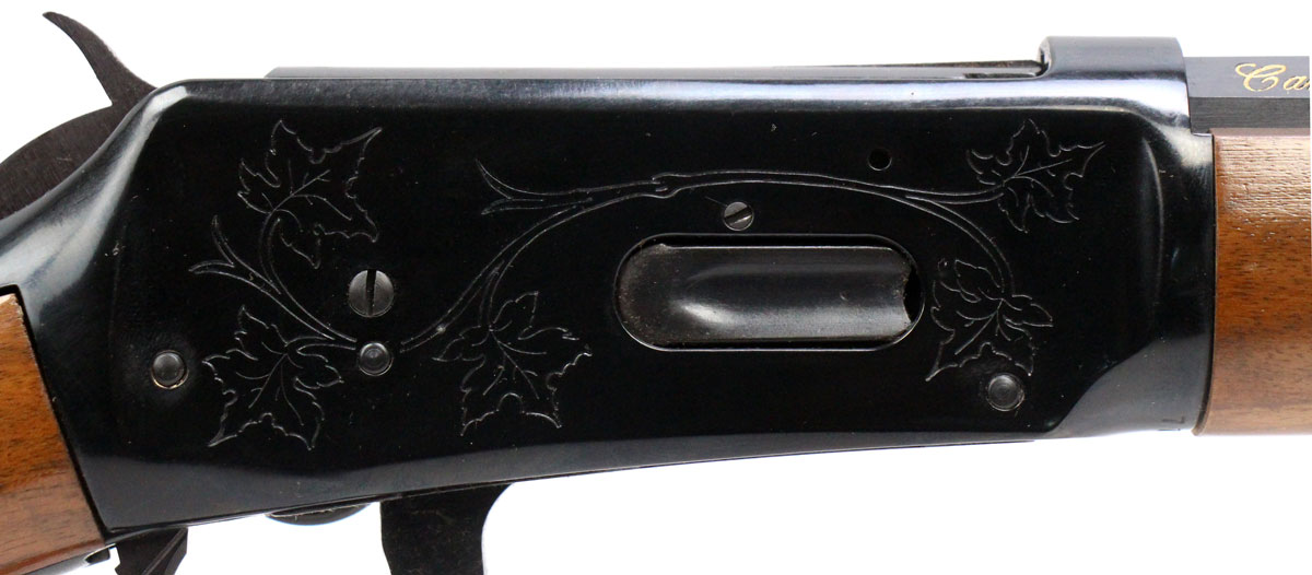 This is a collectible Winchester 94 Canadian Centennial rifle chambered in 30-30 Winchester. It features a 20-inch octagonal barrel, 7-round tube magazine, adjustable rear sight, factory engraved receiver, blued finish, and walnut stock. Includes factory box. Overall, this Winchester is in good condition with some handling wear on the barrel. Bore condition is good with crisp rifling. This would be a good choice for collecting. Buy online today!