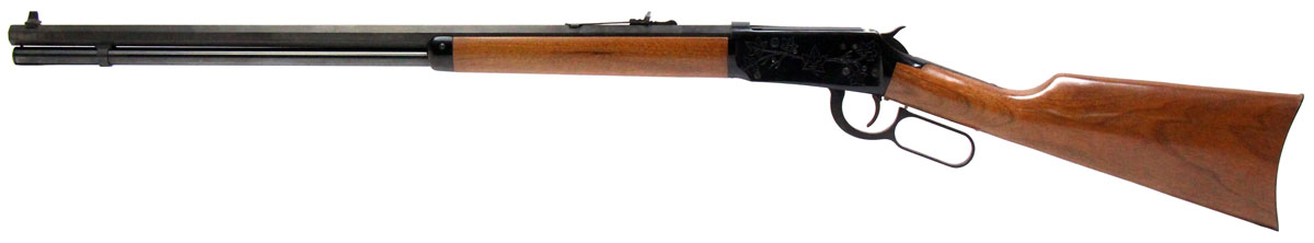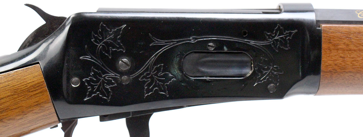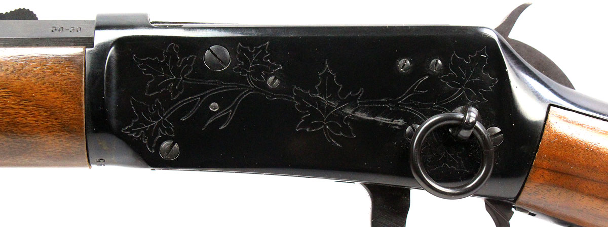 This is a collectible Winchester 94 Canadian Centennial rifle chambered in 30-30 Winchester. It features a 26-inch octagonal barrel, 8-round tube magazine, adjustable rear sight, factory engraved receiver, blued finish, and walnut stock. Includes factory box, hang tag, and instruction manual. Overall, this Winchester is in good condition with some handling wear on the stock and receiver. Bore condition is good with crisp rifling. This would be a good choice for collecting. Buy online today!