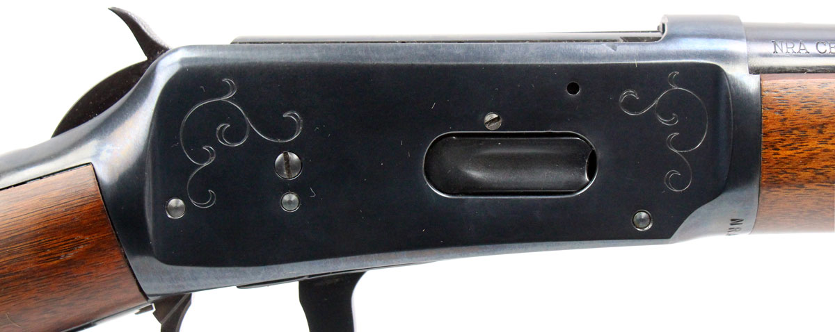 This is a collectible Winchester 94 NRA Centennial Musket rifle chambered in 30-30 Winchester. It features a 26-inch round barrel, 7-round capacity, folding ladder rear sight, sling swivels and full length walnut stock with decorative medallion. Includes factory box, instruction manual, hang tag, and certificate of authenticity. Overall, this Winchester is in good condition with some handling wear on the stock. Bore condition is good with crisp rifling. This would be a good choice for Winchester collectors. Buy online today!