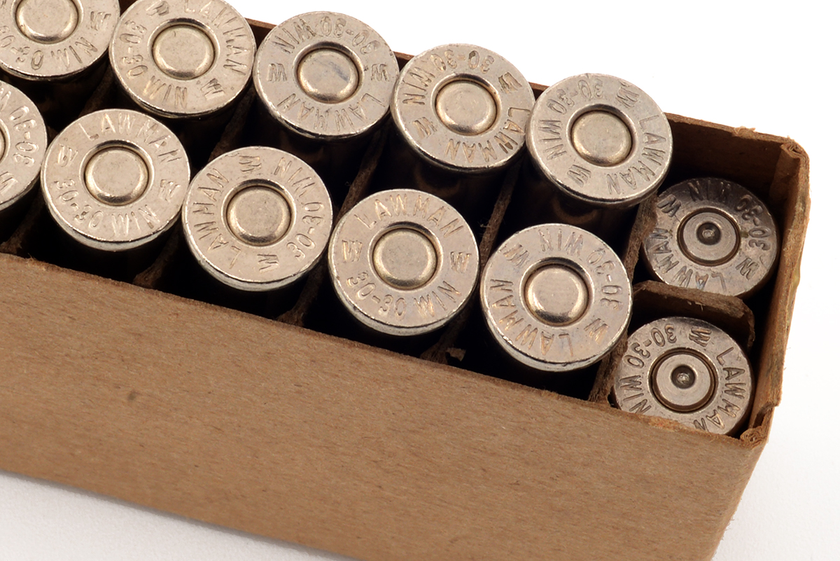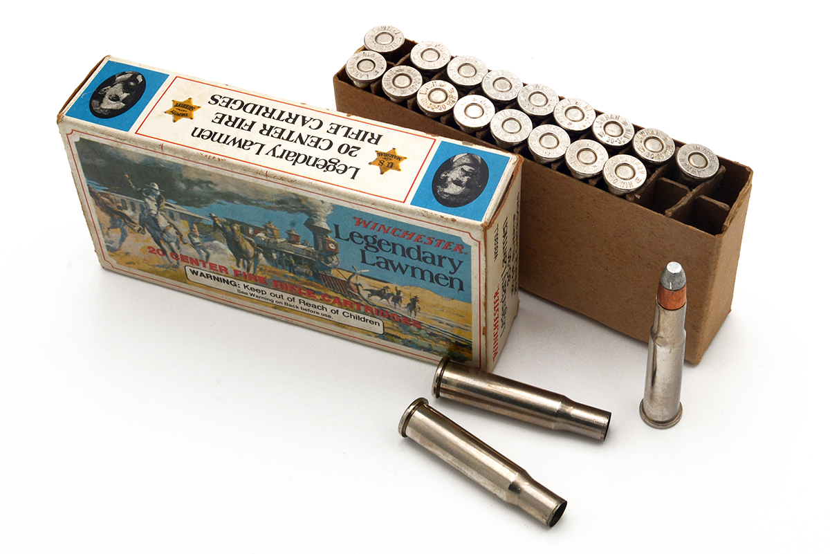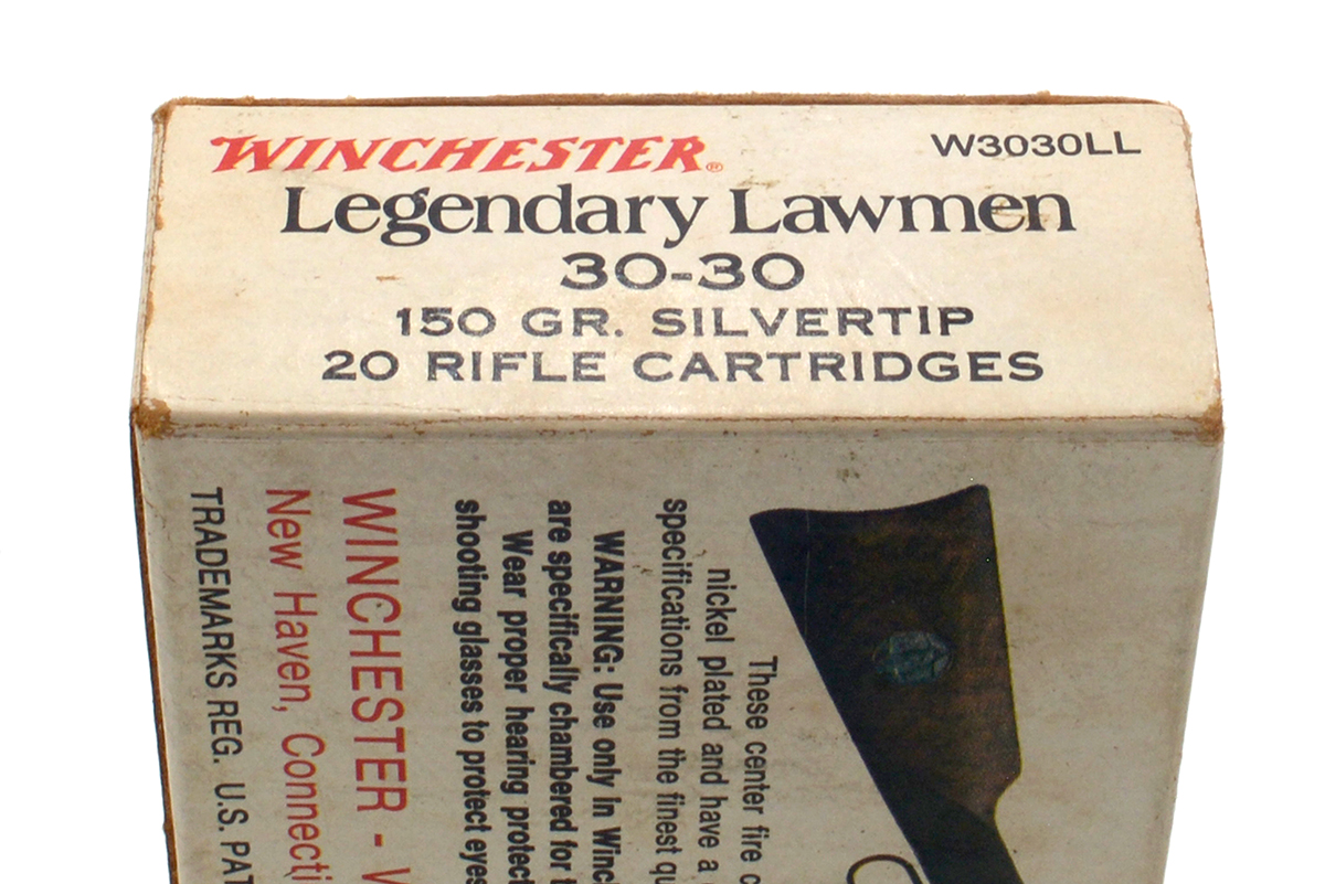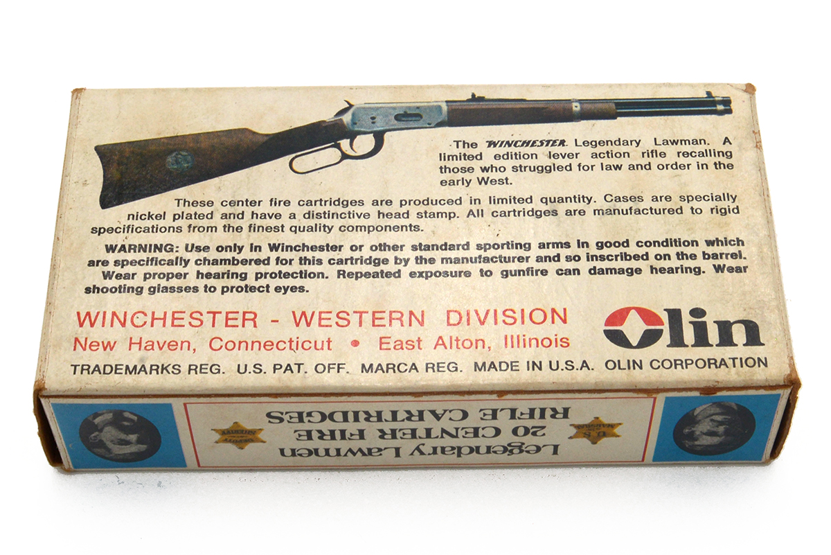 In 1977, Winchester manufactured this ammo along with the Legendary Lawmen commemorative series rifles. The front box art shows men on horseback along with a locomotive. The back shows a Winchester 94 rifle. The cartridges bear "LAWMAN 30-30 WIN" on the head stamp.