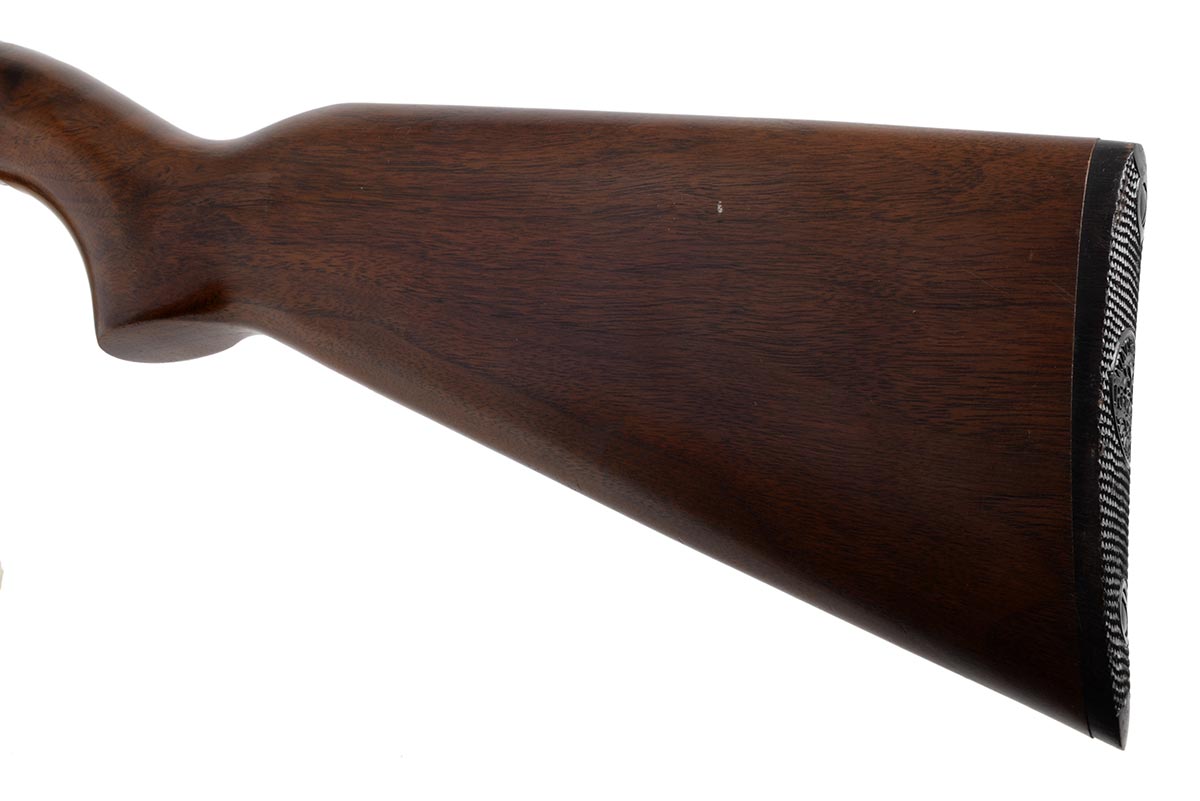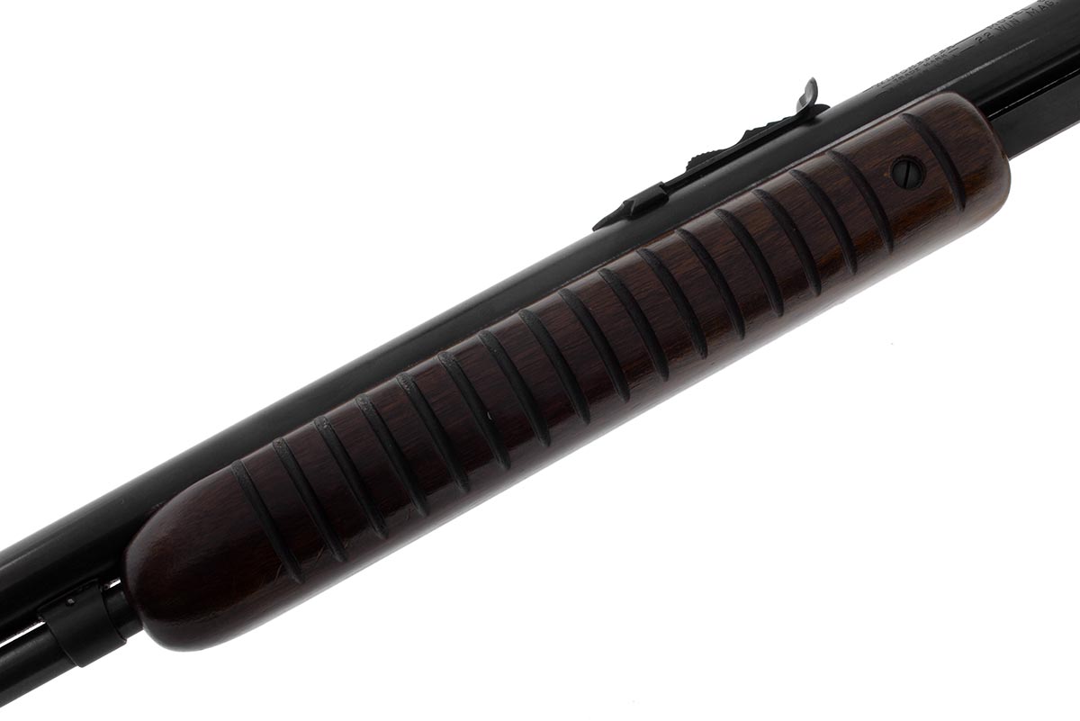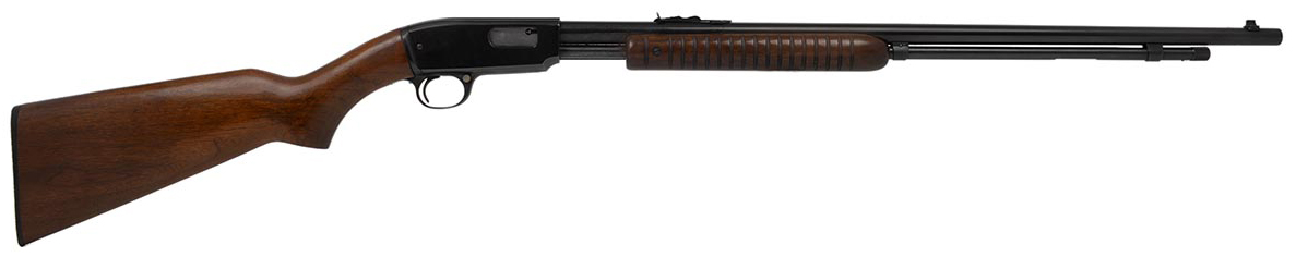 This is a vintage Winchester Model 61 rifle chambered in 22 Magnum. It features a 24-inch barrel, blued finish, walnut wood, flat-bottom 17-groove slide, and grooved receiver. The Winchester 61 22 Magnum was manufactured in small numbers from 1958 until 1963. The serial number dates this example to 1960. This gun is in excellent condition with a bright shiny bore and strong rifling. There is very little wear to the bluing and only a few light scratches. The wood is in great condition with only a few small scuffs and light pressure marks. Examples of these rifles in this condition don't come around often and this would be a great addition to any Winchester collection. Buy online today!