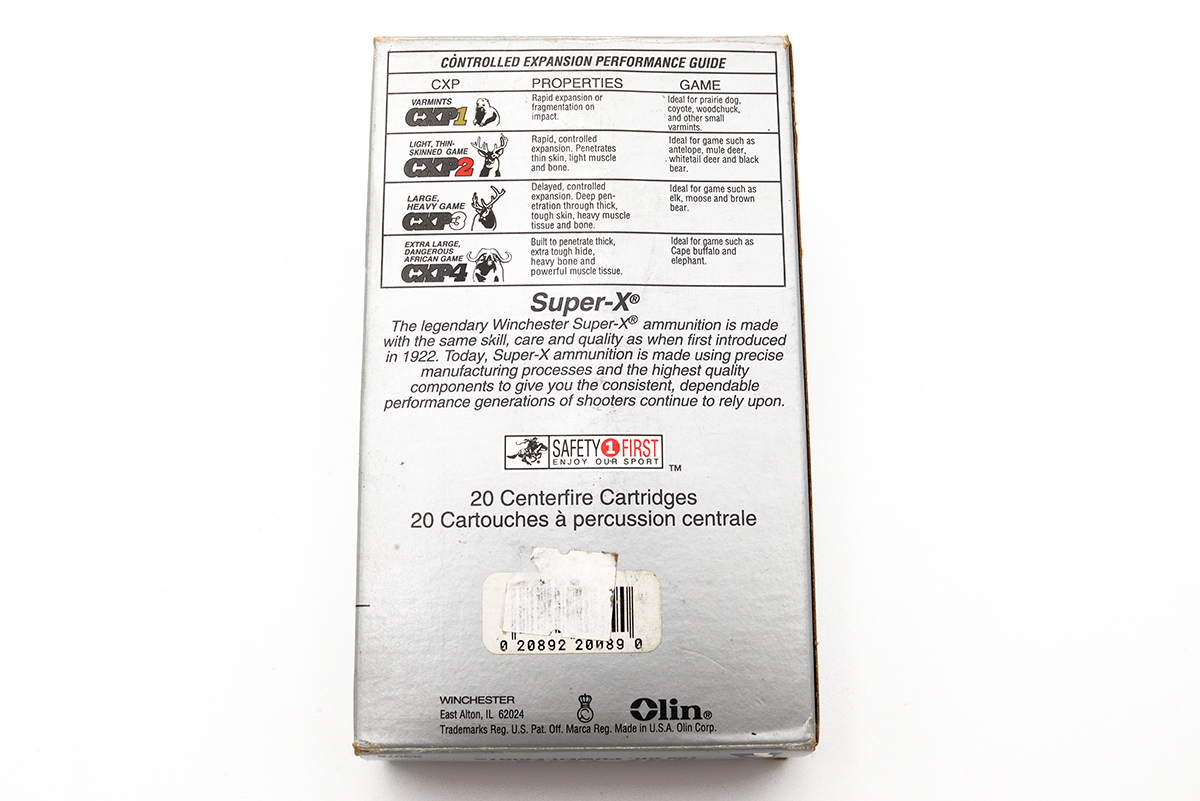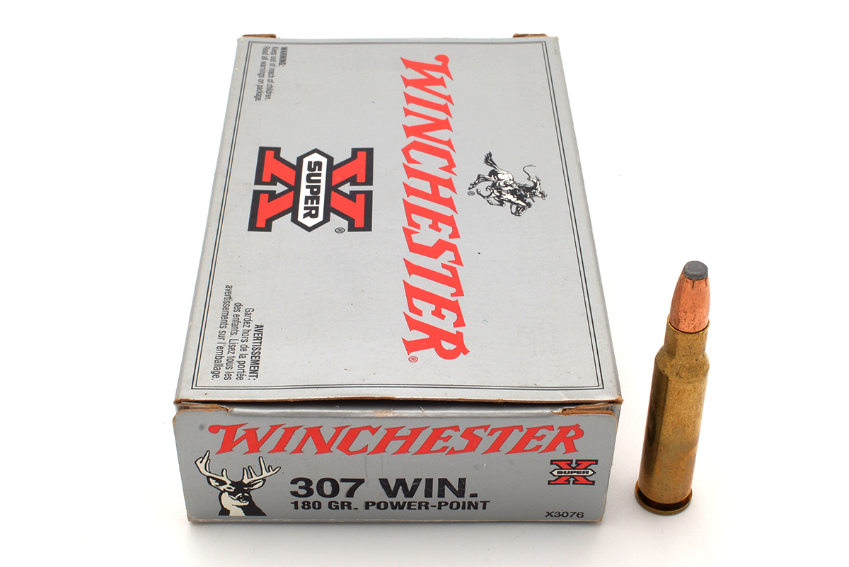 This is a box of pre-owned Winchester 307 Super-X ammunition. It features 20 180 grain Power-Point soft point bullets with brass cartridges, manufacturer code is X3076. Overall the ammo is in good condition with some minor tarnishing, the box has some scuffs and soft edges. Buy online today!