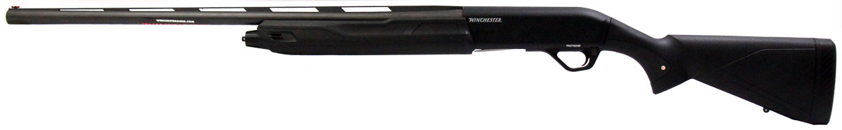 This is a used Winchester SX4 shotgun chambered in 12 gauge. It features a 28-inch vent rib barrel, 3.5-inch chamber, 14.25-inch length of pull, screw-in chokes, cross-bolt safety, and synthetic furniture. Includes factory box, full choke, modified choke, and improved cylinder choke. Overall, this shotgun is in very good condition with minimal wear. This would be a great choice for waterfowl hunting. Buy online today!