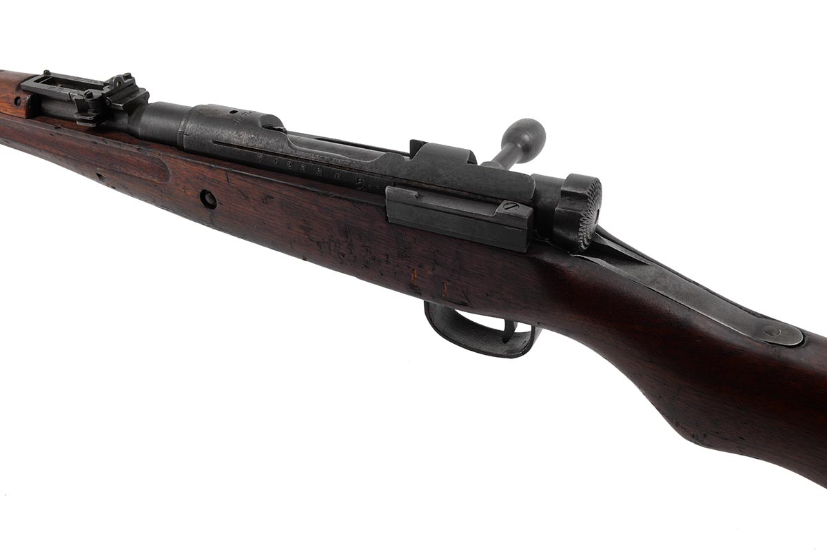 This is a WW2-era Japanese Arisaka Type 99 rifle chambered in 7.7x58. It features a 26-inch barrel, five-round internal box magazine, wood stock, and was manufactured by Kokura Arsenal. This is a 22nd series rifle and was probably manufactured around 1942 (production records didn't survive the war). The mum (chrysanthemum) has been ground off on this rifle and the bolt number does not match the receiver. The monopod has also been removed, along with the fold-down wings on the rear sight, and one of the screws is missing on the front barrel band. The rifle does have a bright shiny bore with strong rifling and much of the original metal finish remains. The wood is in decent shape with some scuffs, dings, nicks and pressure marks. This would be a good rifle for anyone looking to expand their WW2 firearm collection. Buy online today!